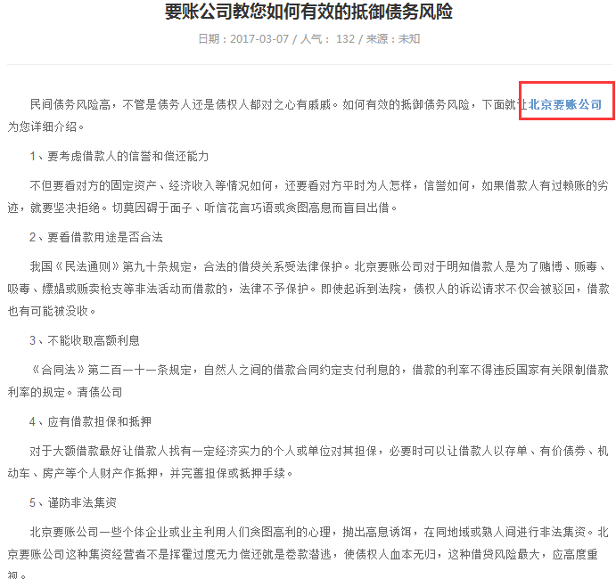 前些日子我们说到北京一家要账公司与我们北京优化公司合作,并且我们已经成功的将贵公司的关键词达标,由于是做的是移动端口,所以没有得到很好的流量及权重提升,所以贵公司要求我们将关键词“北京要账公司”pc端也做到首页。现在我们已经成功的将网站中的关键词设置达标。下面我们就来看一下网站关键词是怎样在短时间内到达首页的。